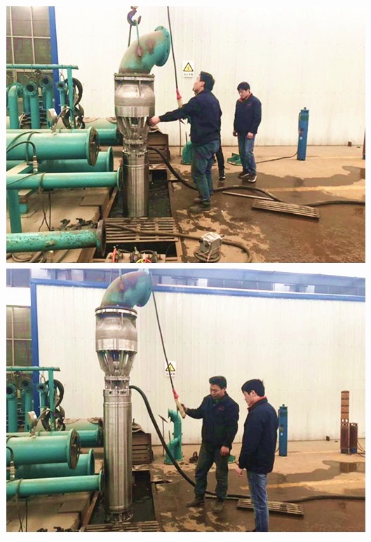 2019年5月21日我公司流量1200立方、楊程18米的不銹鋼304材質(zhì)潛水泵測(cè)試合格!