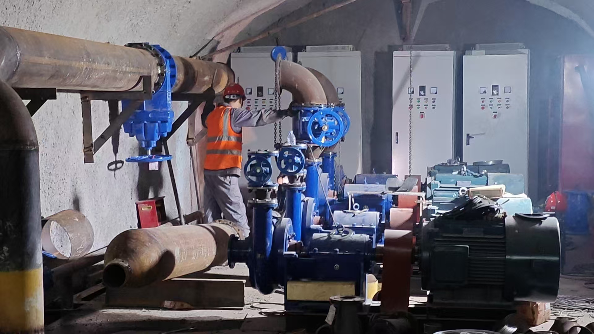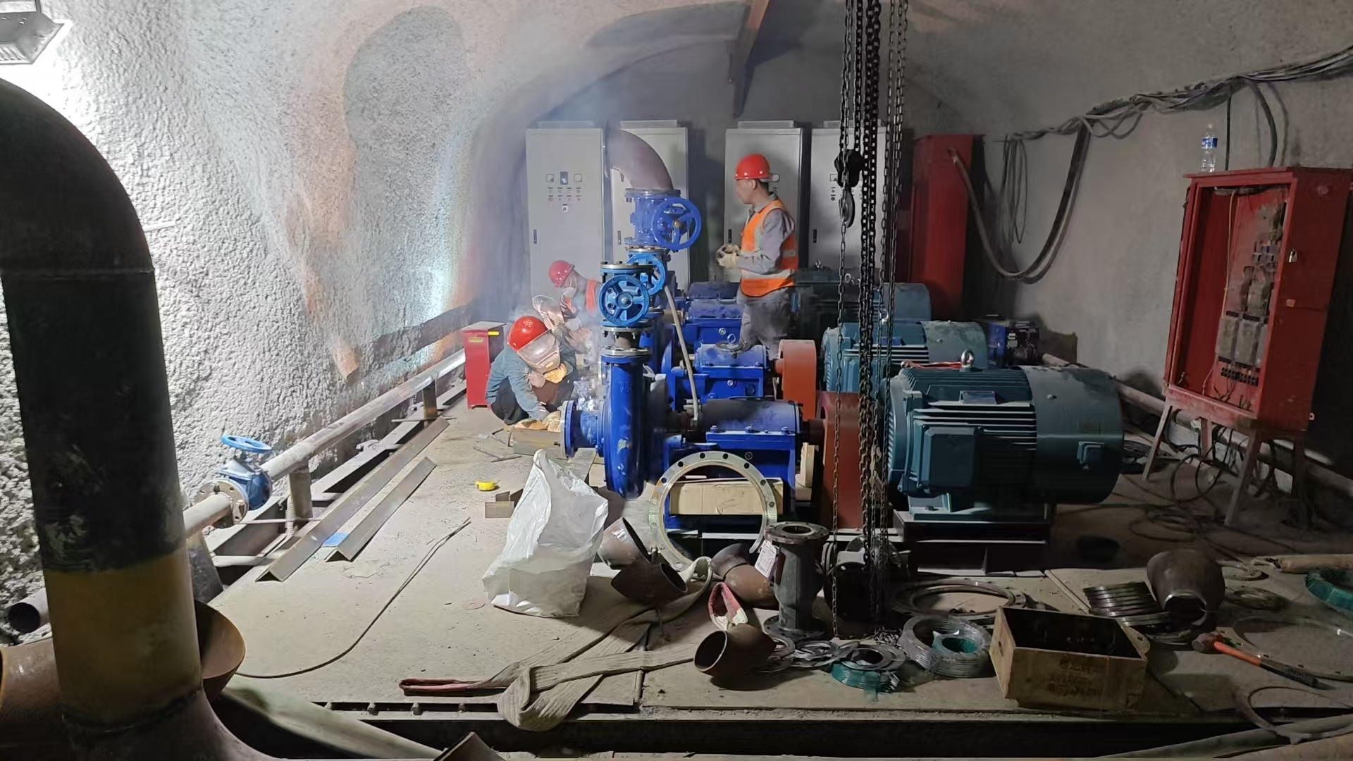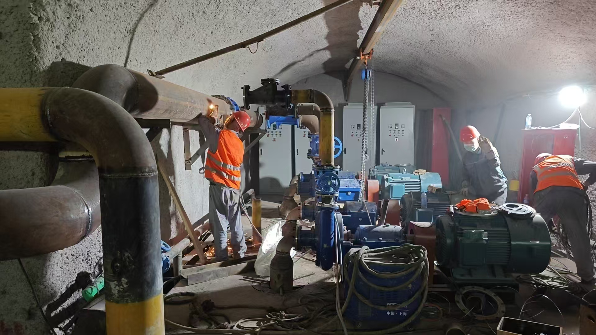 根據(jù)鐵路隧道的工程進(jìn)度,第三批主排水泵已進(jìn)場(chǎng)完畢,立即投入緊張的安裝工作。第三批主排水泵清水泵功率為90KW 4臺(tái),污水泵功率為75KW 4臺(tái),共計(jì)8臺(tái),為不耽誤工程整體進(jìn)度,安裝工作設(shè)備進(jìn)場(chǎng)立即開(kāi)始,預(yù)計(jì)將按期完成安裝工作,在端午節(jié)后開(kāi)始調(diào)試。